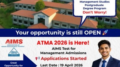 पदव्युत्तर व्यवस्थापन शिक्षण घेऊ इच्छिणाऱ्या विद्यार्थ्यांसाठी एक महत्त्वाची संधी उपलब्ध झाली असून AIMS (Association of Indian Management Schools) मार्फत घेण्यात येणाऱ्या ATMA 2026 (AIMS Test for Management Admissions) या राष्ट्रीय स्तरावरील प्रवेश परीक्षेसाठी अर्ज प्रक्रिया सध्या सुरू आहे. या परीक्षेसाठी अर्ज करण्याची अंतिम तारीख १९ एप्रिल २०२६ असल्याने इच्छुक विद्यार्थ्यांनी विलंब न करता अर्ज करण्याचे आवाहन करण्यात आले आहे.