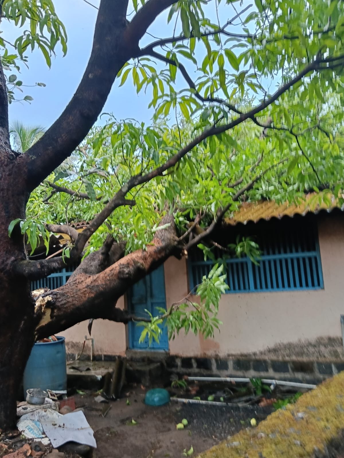 गुरुवारी दुपारी अचानक आकाशात काळेकुट्ट ढग दाटून आले आणि विजांच्या कडकडाटासह मुसळधार पावसाला सुरुवात झाली. काही ठिकाणी वादळी वाऱ्यामुळे झाडे उन्मळून पडली. तळसर बौद्धवाडी येथे संदीप मोहिते यांच्या घरावर झाड कोसळून नुकसान झाले.