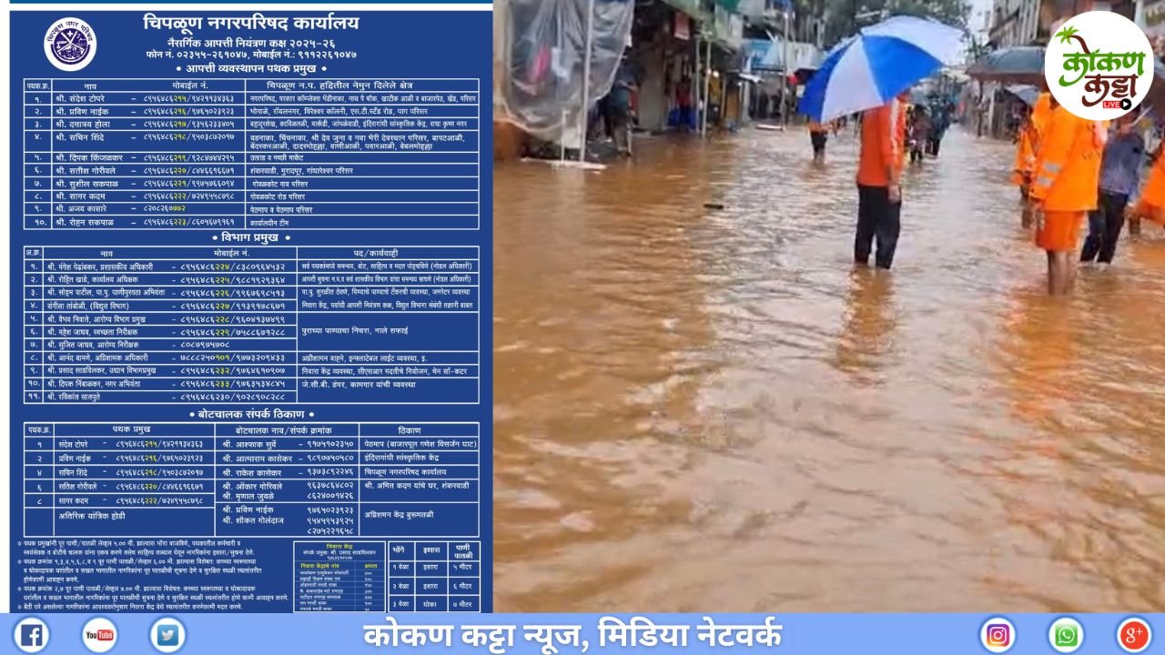 वशिष्ठी नदी ची इशारा पातळी ओलांडली आहे. व्यापारी बंधूनी आपल्या दुकानातील माल सुरक्षित ठिकाणी ठेवावा, तसेच ज्या नागरिकांच्या घरी पाणी भरण्याची परिस्थिती निर्माण झाली असेल त्यांनी आपले साहित्य सुरक्षित ठिकाणी ठेवण्यात याव नागरिकांनी अफवावर विश्वास ठेवू नये, प्रशासनाजवळ संपर्क करावा. काही अडचण आल्यास किंवा मदत लागल्यास नगर पालिका प्रशासन यांच्याकडे संपर्क साधावा असं आवाहन प्रशासनाने केलं आहे.