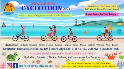 सायकल चालवण्याचे अनेक फायदे आहेत. सायकल संस्कृती वाढावी व सायकलबद्दल आवड निर्माण व्हावी या हेतूने दापोली सायकलिंग क्लबतर्फे २६ व २७ ऑक्टोबर २०२५ रोजी सकाळी दापोली विंटर सायक्लोथॉन २०२५, सिझन ८ स्पर्धेचे आयोजन सोहनी विद्यामंदिर मैदान दापोली येथे करण्यात आले आहे. यासाठी राज्यातील अनेक नावाजलेले सायकलस्वार आपल्या कुटुंबासह दापोलीत येणार आहेत.