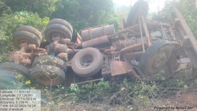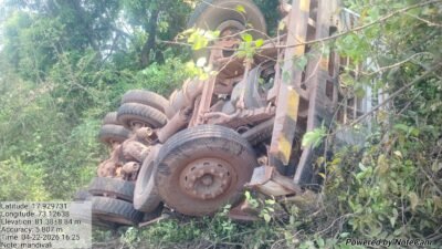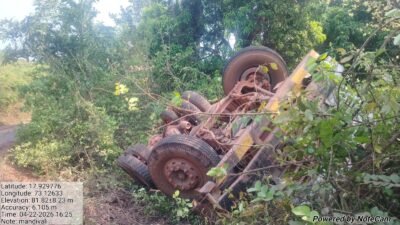 दापोली तालुक्यातील मांदिवली गावातील उर्दू शाळेजवळ सुरू असलेल्या बॉक्साइट वाहतुकीच्या पार्श्वभूमीवर २२ एप्रिल रोजी दुपारी एक गंभीर घटना घडली. मायनिंग साइटवरून बॉक्साइट वाहतूक करणारा एक डंपर शाळेजवळच अचानक पलटल्याने परिसरात एकच खळबळ उडाली. सुदैवाने या अपघातात कोणतीही जीवितहानी झाली नसली तरी विद्यार्थ्यांसह ग्रामस्थांमध्ये भीतीचे वातावरण निर्माण झाले आहे.