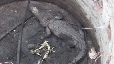 पाहणी दरम्यान, कोरड्या विहिरीत मगर आढळली नाही. आजूबाजूच्या परिसराची तपासणी केली असता, विहिरीपासून दक्षिण दिशेला ५० मीटर अंतरावर लाकडे पेटताना दिसली.