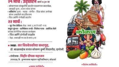 दापोली : कोकणातील समृद्ध संस्कृती, लोककला आणि स्थानिक कलाकारांना व्यासपीठ मिळावे या उद्देशाने यंदाही दापोली येथे भव्य दापोली सांस्कृतिक महोत्सव आयोजित करण्यात येणार आहे. कोळथरे येथील कै. कृष्णामामा महाजन स्मृतिप्रतिष्ठानच्या वतीने हा महोत्सव आयोजित केला जात असून महाराष्ट्र शासनाच्या सांस्कृतिक कार्य विभागाच्या सांस्कृतिक कार्य संचालनालयाचे या महोत्सवाला मुख्य प्रायोजकत्व लाभले आहे. दि. २१ व २२ मार्च २०२६ रोजी (शनिवार व रविवार) हा महोत्सव दापोली येथे मोठ्या उत्साहात साजरा होणार आहे.
