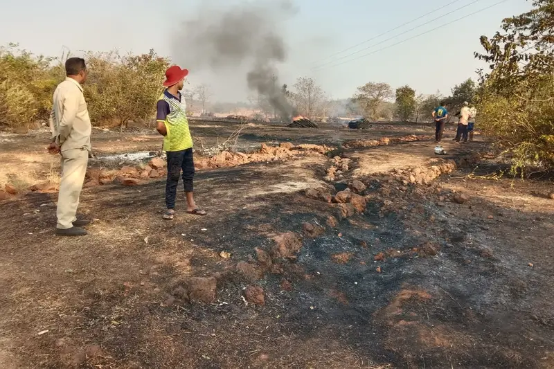 वणव्यात होरपळून मृत पावलेल्या शेतकऱ्याचेन नाव भरत दिगंबर धारगळकर असे आहे. याबाबत मिळालेल्या माहितीनुसार, नाखरे येथील वैद्य यांच्या मालकीच्या आंबा बागेत फवारणीचे काम सुरू होते. दुपारी ३ वाजण्याच्या सुमारास बागेच्या बाहेरील बाजूला अचानक आग लागली. वाऱ्यामुळे ही आग वेगाने बागेच्या दिशेने सरकू लागली. आपली आंबा बाग आगीच्या भक्ष्यस्थानी पडू नये, या उद्देशाने भरत धारगळकर हे तातडीने वनवा विझवण्यासाठी धावले.