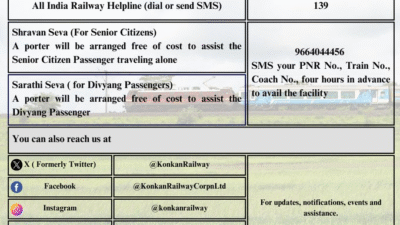दिवाळीनिमित्त प्रवाशांची वाढती संख्या लक्षात घेता कोकण रेल्वेने जादा रेल्वेगाड्या चालवण्याचा निर्णय घेतला आहे. गाडी क्रमांक ०७३६५ एसएसएस हुबळी जंक्शन – मडगाव जंक्शन मार्गे यशवंतपूर जंक्शन एक्स्प्रेस शुक्रवारी पहाटे ५.१५ वाजता एसएसएस हुबळी जंक्शन येथून सुटेल.
