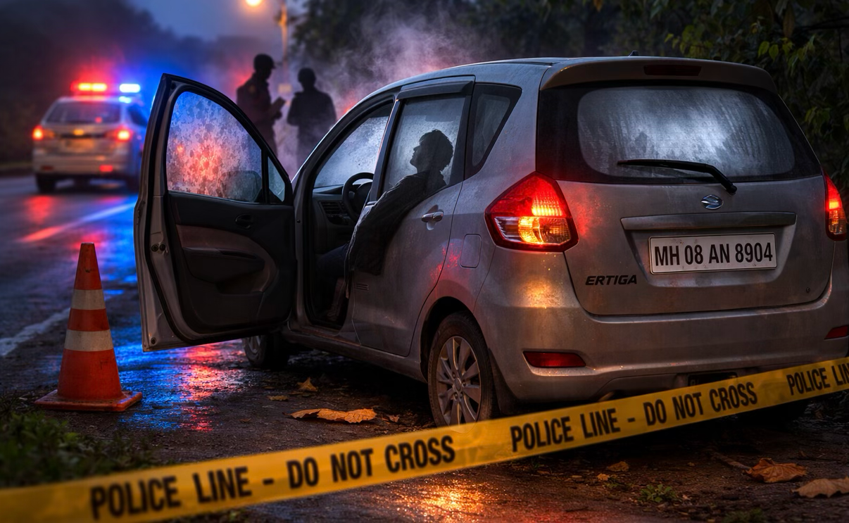 पोलिसांनी दिलेल्या माहितीनुसार, एमएच/०८/एएन/८९०४ क्रमांकाची इर्टिगा कार रस्त्याच्या कडेला उभी असल्याची माहिती स्थानिकांनी दिली. वाहनाला बाष्प धरल्याचे दिसत होते. खबर देणाऱ्या व्यक्तीने गाडीत डोकावून पाहिले असता चालकाच्या सीटवर सीट मागे घेतलेल्या अवस्थेत एक व्यक्ती झोपल्यासारखी दिसली.