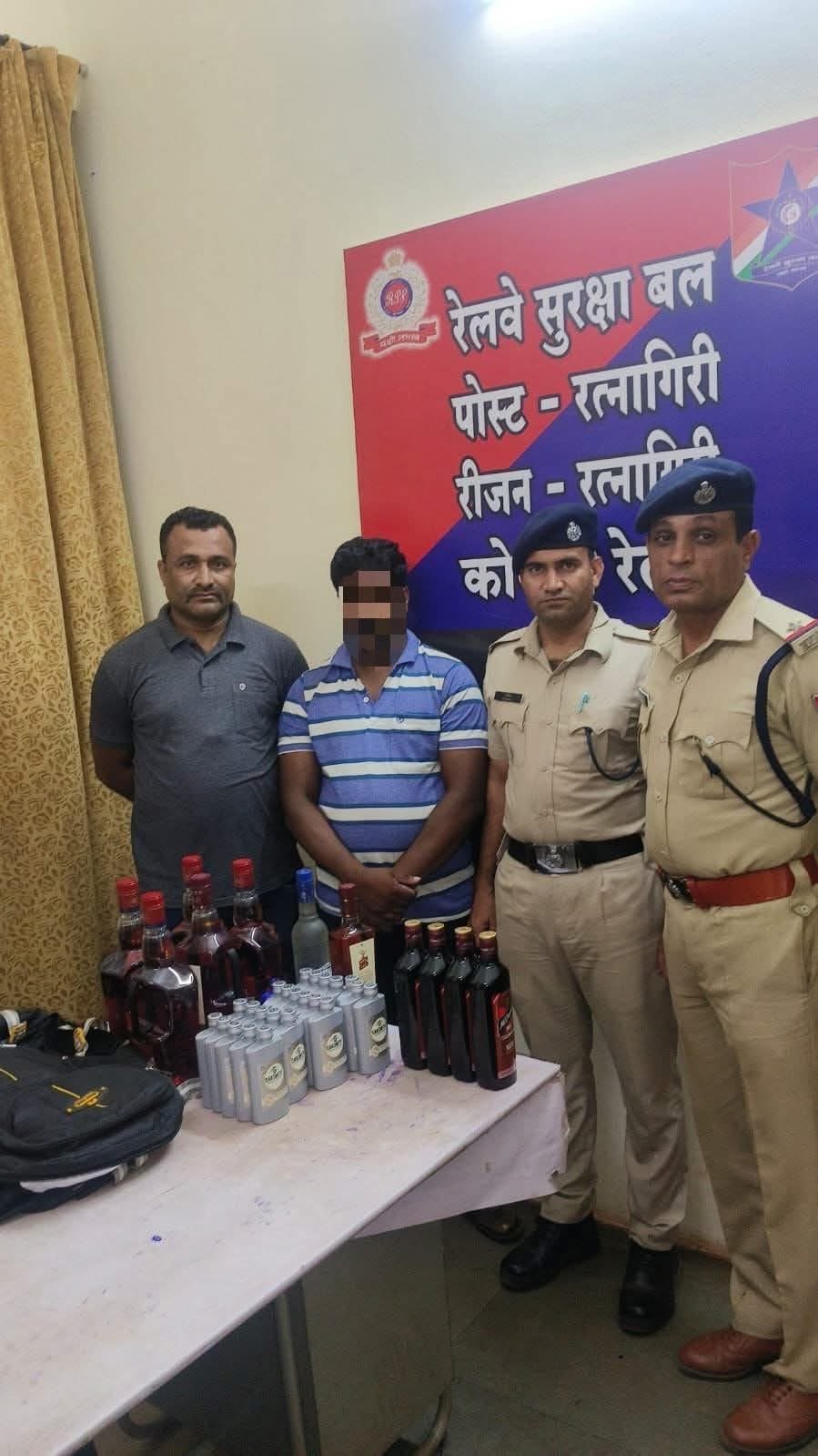 रत्नागिरी येथे कोकण रेल्वे मार्गावरील गाडी क्रमांक ११००४ कोकण कन्या एक्सप्रेसमध्ये अवैध मद्यसाठ्याची तस्करी उघडकीस आली असून, वातानुकूलित डब्यातील एका परिचारकाला रेल्वे संरक्षण दलाने रंगेहाथ पकडले आहे. ही कारवाई रत्नागिरी रेल्वे स्थानकावर करण्यात आली.