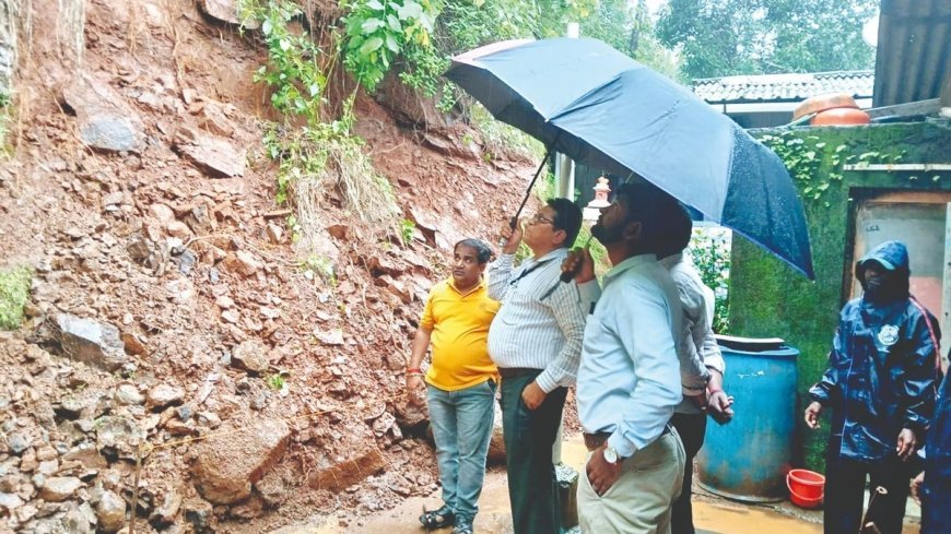 याबाबत माहिती मिळताच नगरपरिषदेचे मुख्याधिकारी विशाल भोसले, प्रशासकीय अधिकारी मंगेश पेढांबकर, नगर अभियंता प्रनोळकुमार खताळ यांनी घटनास्थळी जाऊन पाहणी केली.गोवळकोट परिसरात गोविंदगडाच्या पायथ्यानजीक गेली अनेक वर्षे नागरिकांची घरे आहेत.