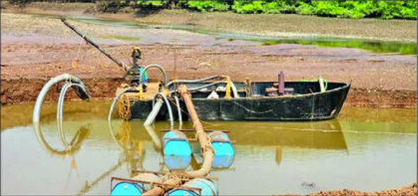 दापोली तालुक्यातील आडे खाडीत मागील दोन महिन्यांपासून बेकायदेशीर सक्शन पंप लावून भरमसाट वाळू उपसा केला जात आहे. याबाबत दापोली महसूल विभागाला माहिती देऊनही कारवाई करण्यास वेळ मिळत नाही, त्यामुळे बेकायदेशीर वाळू उपसा करणाऱ्यांचे फावले आहे.