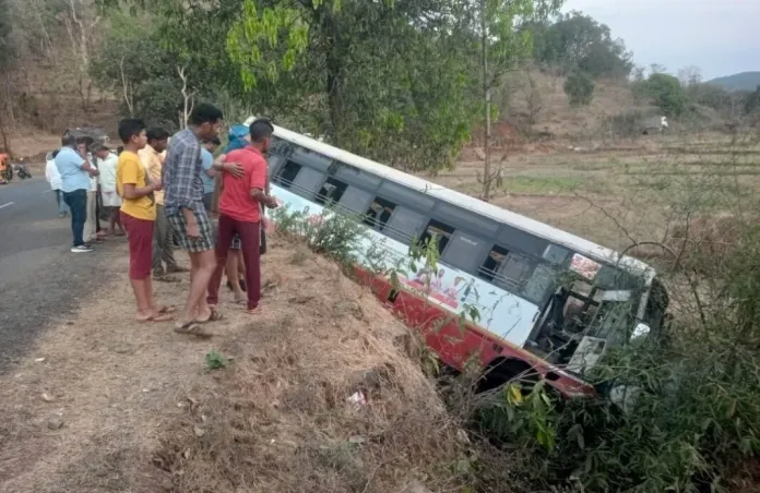 तो लोवले पदळीचे वाकण याठिकाणी आला असता त्याचा एसटीवरील ताबा सूटला. त्यामुळे एसटी रस्त्याच्या डाव्या बाजूला असलेल्या कठड्यावर चढून नाल्यात पडून हा अपघात झाला.