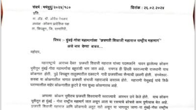 कोकण : मुबंई-गोवा महामार्गाला “छत्रपती शिवाजी महाराज राष्ट्रीय महामार्ग” नाव देण्याची कोंकण प्रादेशिक पक्षाची मागणी