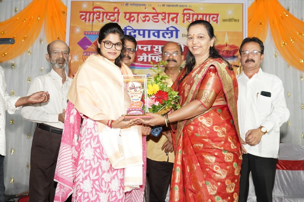 कार्यक्रमात अपूर्वा ताई किरण सामंत यांचा सन्मान माजी पंचायत समिती सदस्य सौ. जागृती शिंदे यांच्या हस्ते करण्यात आला.