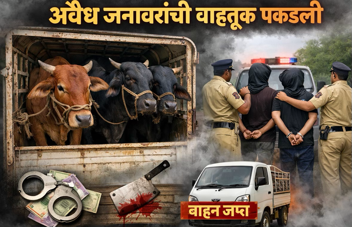 सोमवारी दुपारी नेरकेवाडी परिसरात संशयास्पद हालचालींची माहिती मिळाल्यानंतर पोलिसांनी सापळा रचला. यावेळी महिंद्रा मॅक्सिमो या वाहनाची तपासणी केली असता, त्यामध्ये तीन बैल अमानुष पद्धतीने कोंडून ठेवलेले आढळले. जनावरांना ना चारा देण्यात आला होता, ना पाण्याची व्यवस्था करण्यात आली होती.