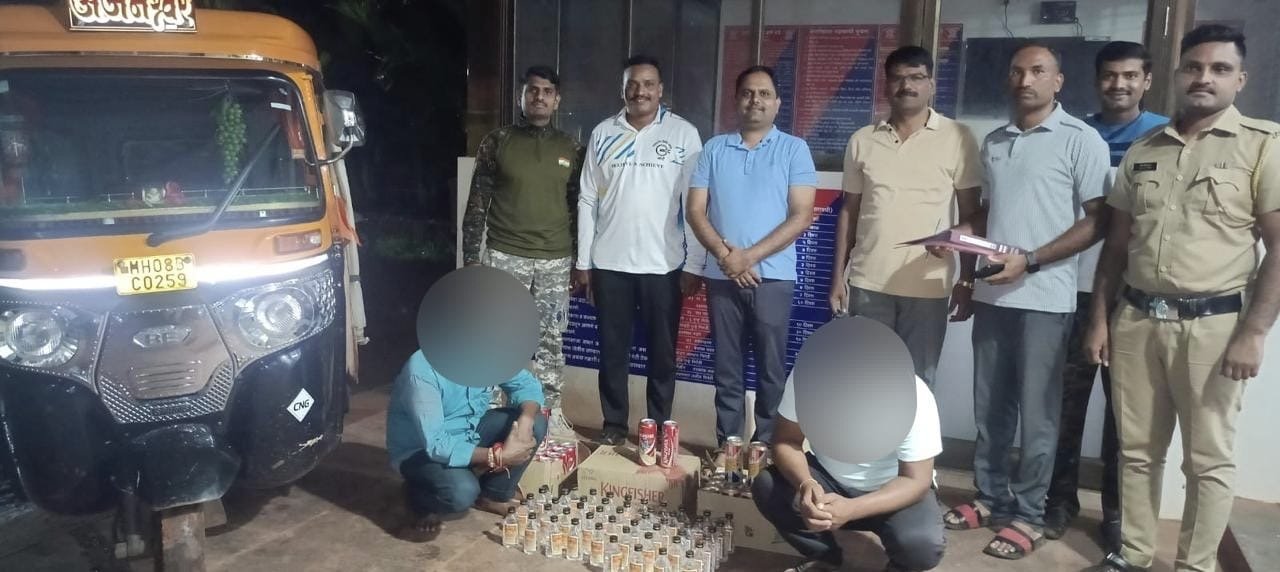 आगामी नवरात्र उत्सवाच्या पार्श्वभूमीवर रत्नागिरी जिल्हा पोलीस दलाने अवैध धंद्यांविरोधात आपली मोहीम तीव्र केली आहे. याच सतर्कतेतून रत्नागिरी पोलीस विभागाच्या मार्गदर्शनाखाली सागरी पोलिस ठाणे नाटेच्या पोलिसांनी ऑटो रिक्षातून विनापरवाना दारू विक्री करणाऱ्या दोघांवर मोठी कारवाई केली.