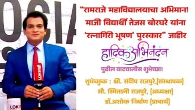 दापोलीतील श्री. रामराजे महाविद्यालयाच्या मास मीडिया विभागाचे माजी विद्यार्थी आणि कोकण कट्टा न्यूजचे संपादक तेजस बोरघरे यांना प्रतिष्ठेचा “रत्नागिरी भूषण पुरस्कार 2025” जाहीर झाला आहे.