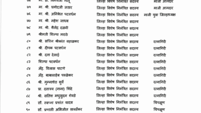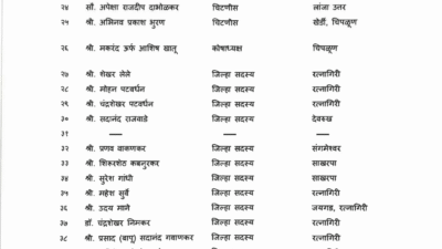 (नाचणे, रत्नागिरी), स्वानंद सुभाष रानडे (चिपळूण), अभिजीत यशवंत गुरव (कोदवली, राजापूर), सुप्रिया संतोष उतेकर (खेर्डी, चिपळूण), सरचिटणीस : राजन विष्णू पटवर्धन (नाचणे, रत्नागिरी), निलेश विठोबा भुरवणे (देवरुख, संगमेश्वर), योगेश चंद्रकांत शिर्के (चिवेली, चिपळूण), मनोज विनायक पाटणकर (रत्नागिरी), . नयना उदय पवार (सती, चिपळूण), अनिल अशोक सावर्डेकर (चिपळूण), समीर सुधाकर टाकळे (चिपळूण), समिरा संतोष सुर्वे (लांजा दक्षिण), अपेक्षा राजदीप दाभोळकर (लांजा उत्तर), अभिनव प्रकाश भुरण (खेर्डी, चिपळूण), तर कोषाध्यक्ष पदावर मकरंद ऊर्फ आशिष खातू (चिपळूण) यांची नियुक्ती करण्यात आली आहे.