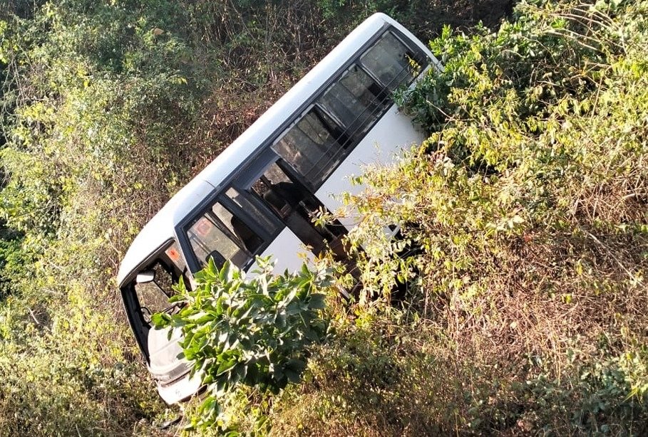 वळणावर गाडीचे ब्रेक फेल झाल्यामुळे हा अपघात घडल्याची शक्यता वर्तवण्यात येत आहे. जखमींना तात्काळ उपचारासाठी रत्नागिरी येथील जिल्हा शासकीय रुग्णालयात दाखल करण्यात आले आहे.मिळालेल्या माहितीनुसार, अपघातातील सर्व जखमी हे रस्त्याचे काम करणारे मजूर असून ते सध्या हरचेरी या ठिकाणी वास्तव्यास होते. बुधवारी दुपारी हे सर्व कामगार मिनी बसने जीवनावश्यक वस्तूंच्या खरेदीसाठी पाली येथील बाजारपेठेत आले होते.