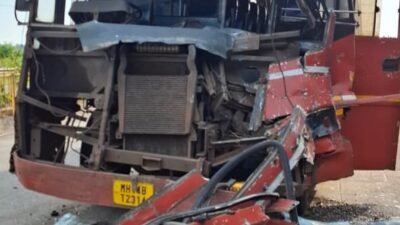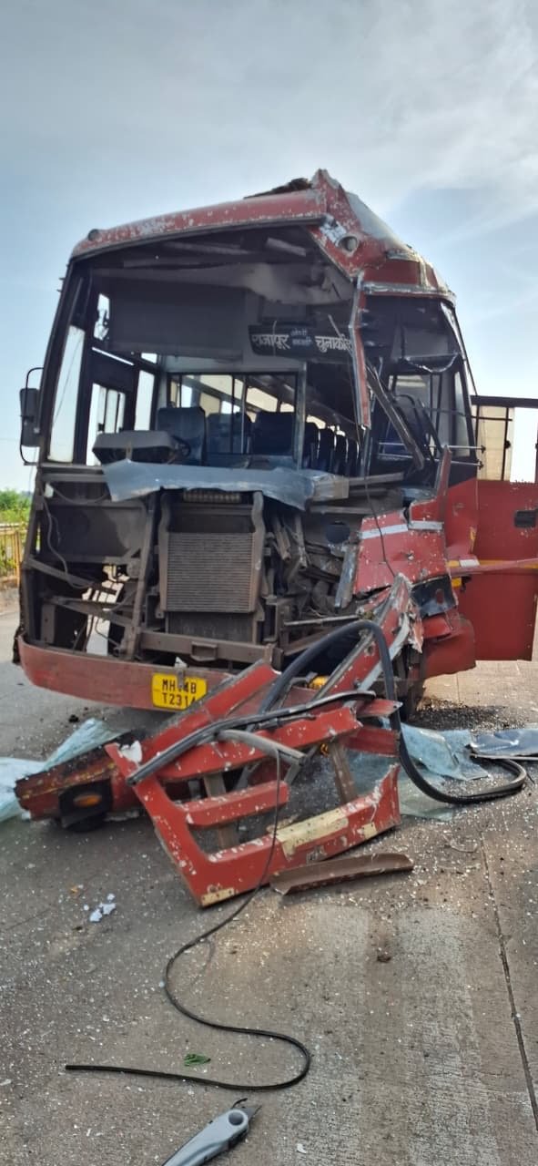 या धडकेत बसचे पुढील नुकसान झाले असून, काही प्रवासी किरकोळ जखमी झाले आहेत. सुदैवाने मोठी जीवितहानी टळली.